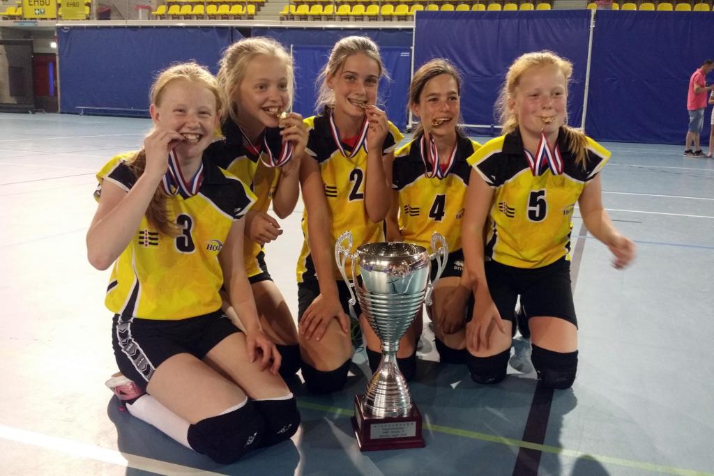 De Horster meiden van Hovoc 6.1 hebben op zaterdag 2 juni een mooie vijfde plaats behaald op de Nederlandse Kampioenschappen volleybal in Eindhoven. Na een week eerder kampioen te zijn geworden van Zuid Nederland mochten Floor Boessen, Janne Peeters, Daniek Lemmen, Fleur Houwen en Meike Bouwmans zich nu met de besten van Nederland meten.