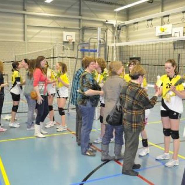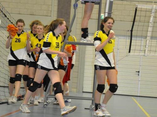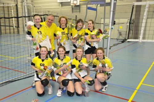 De eerste set begonnen we een beetje zenuwachtig, maar het liep gelukkig goed af met 25-23. Kampioenen! De rest van de wedstrijd was de spanning er voor het grootste deel af, maar we hebben er voor het publiek toch nog een feestje van proberen te maken en hebben verdiend met 4-0 gewonnen!