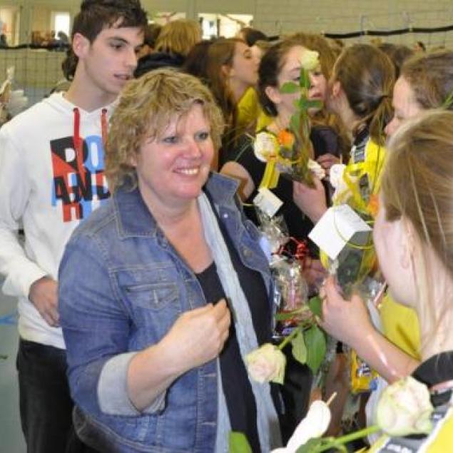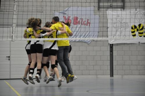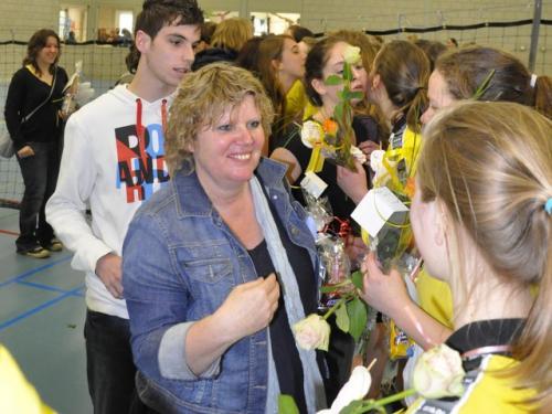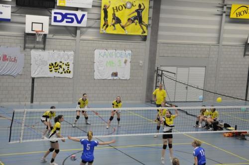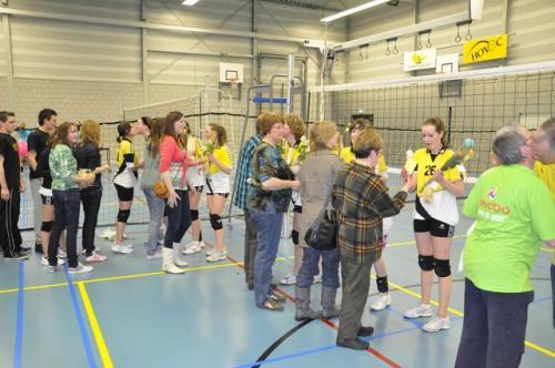 Zaterdag 10 april hadden wij onze kampioenswedstrijd. Van tevoren hadden we flink wat posters opgehangen en veel mensen uitgenodigd, en de tribune was dan ook goed vol. We hoefden maar één setje te pakken van Avoc en om ons kampioen te mogen noemen.