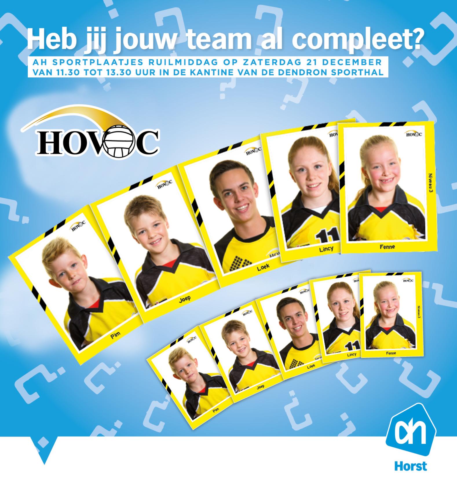 Heb jij je favoriete plaatje nog niet, en een ander plaatje wel twee keer of vaker? Op zaterdag 21 december van 11.30-13.30 uur is er in de kantine van de Dendron Sporthal een ruilmiddag! Iedereen mag komen ruilen, en elkaar helpen de verzamelalbums zo vol mogelijk te krijgen. Albert Heijn Horst zal voor wat te snoepen en te drinken zorgen! Tot dan!