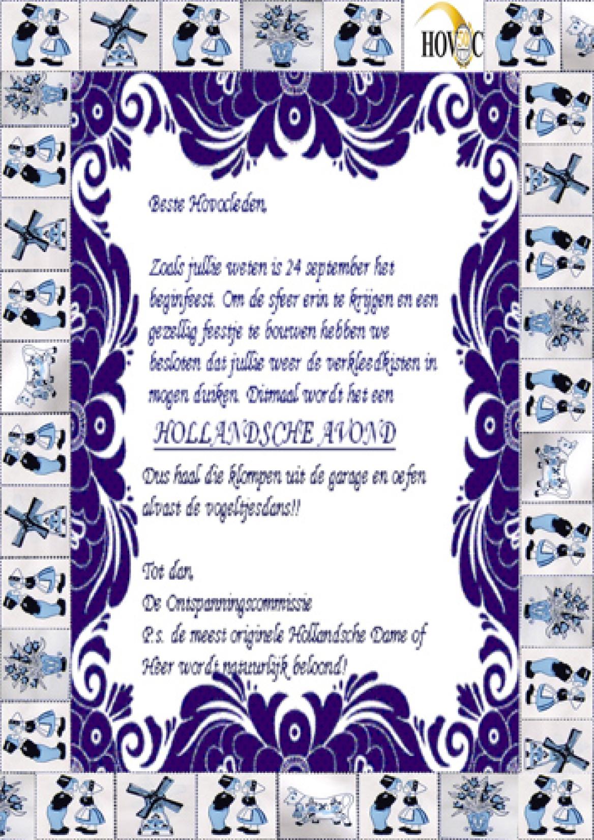 Hovoc Beginfeest; zaterdag 24 septemberDe competitie gaat weer bijna van start en dat moet natuurlijk gevierd worden met een beginfeest. Op zaterdag 24 september om 21.00 uur starten we het seizoen met een Hollandsche avond in de kantine. Hierbij zijn jullie allemaal van harte uitgenodigd! Dresscode: Hollands