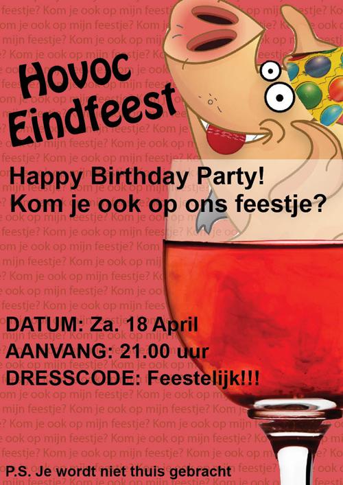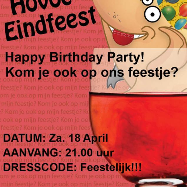 Eindfeest: Birthdayparty!Het einde van de competitie 2008/2009 is in zicht. Aanstaande zaterdag spelen we alweer de laatste wedstrijd. Aansluitend is het eindfeest met het thema "Birthdayparty!". Onder het genot van een drankje, verschillende acts en DJ Popcornking zullen we het seizoen afsluiten. Check jullie team-postvak voor de uitnodiging en dress-code. Tot zaterdag!